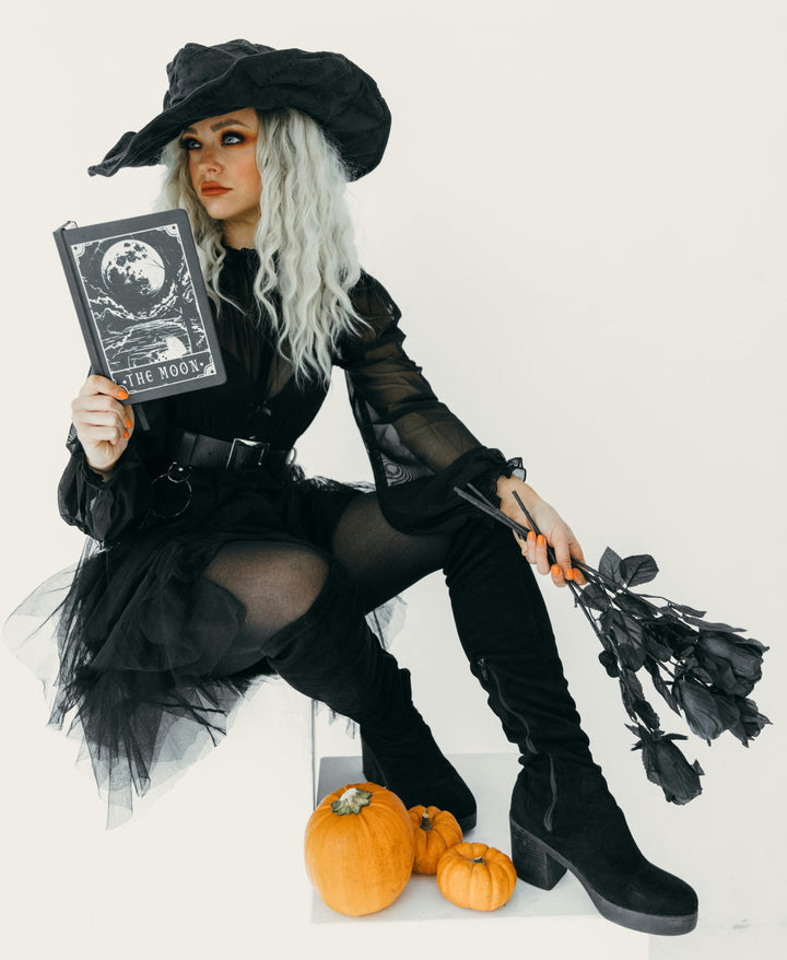 The dress is made from lightweight fabric with flattering cuts to combine comfort and style. Some variations may include lace details or glitter accents for a glamorous witchy look. Whether you prefer scary or chic, this costume adapts easily.